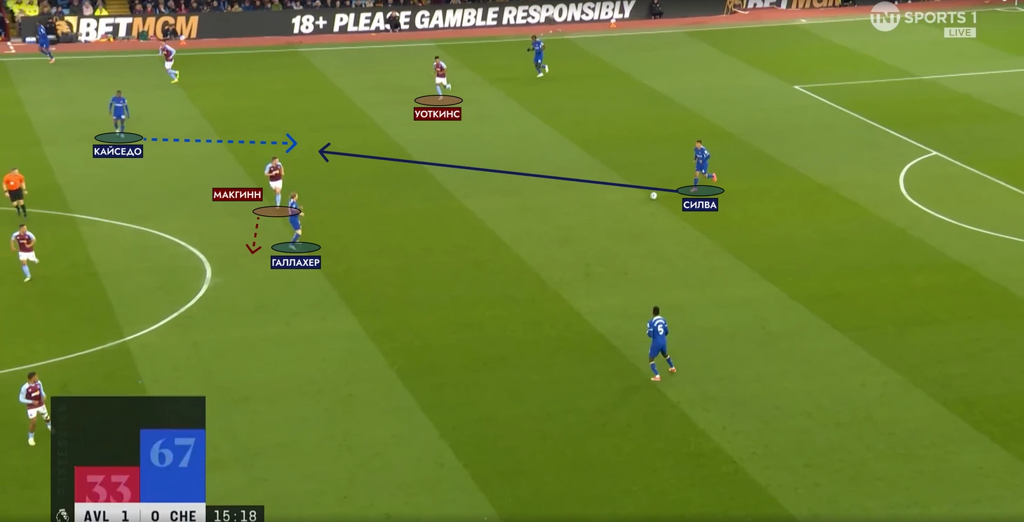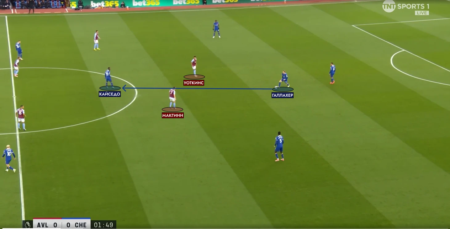 Конор Галлахер и Коул Палмер поочередно отпускались в опорку к Кайседо, создавая больше вариантов для передач от защитников.