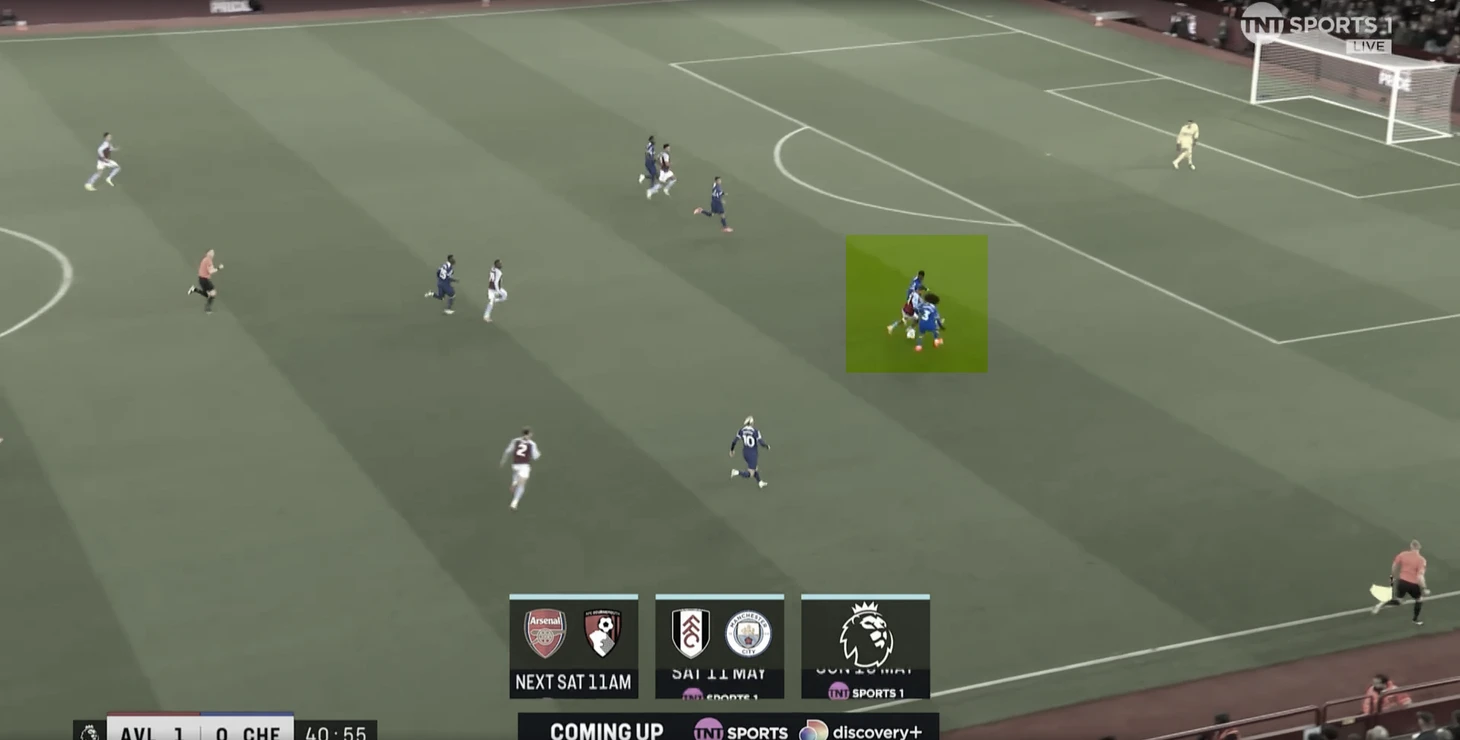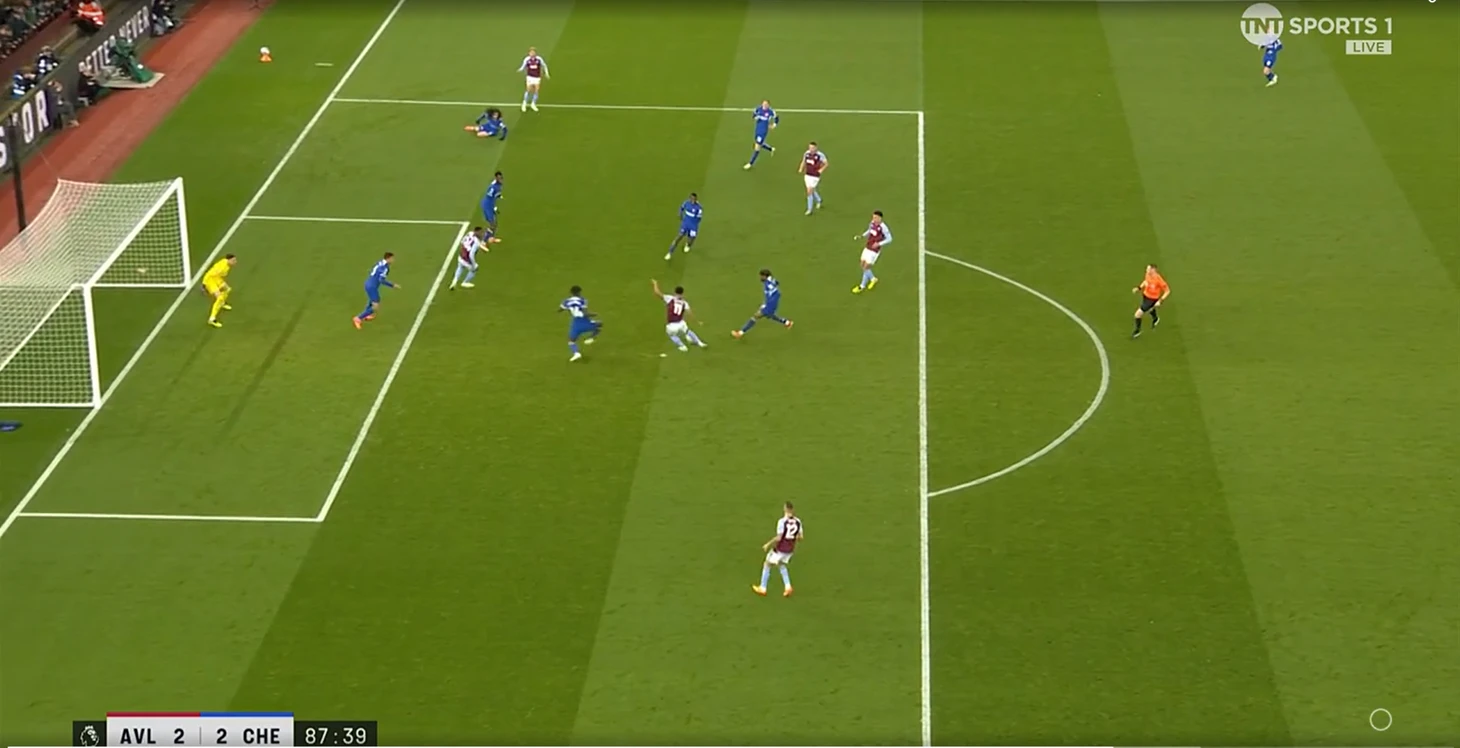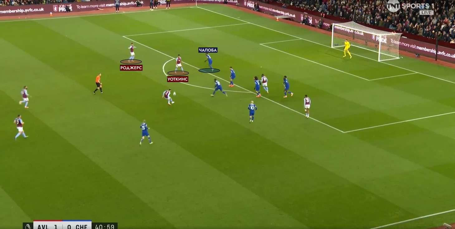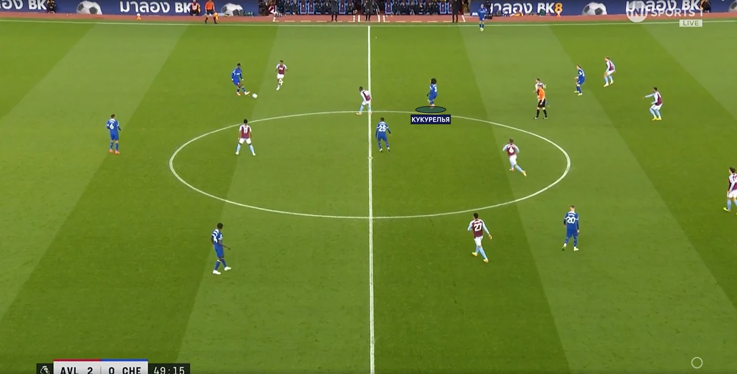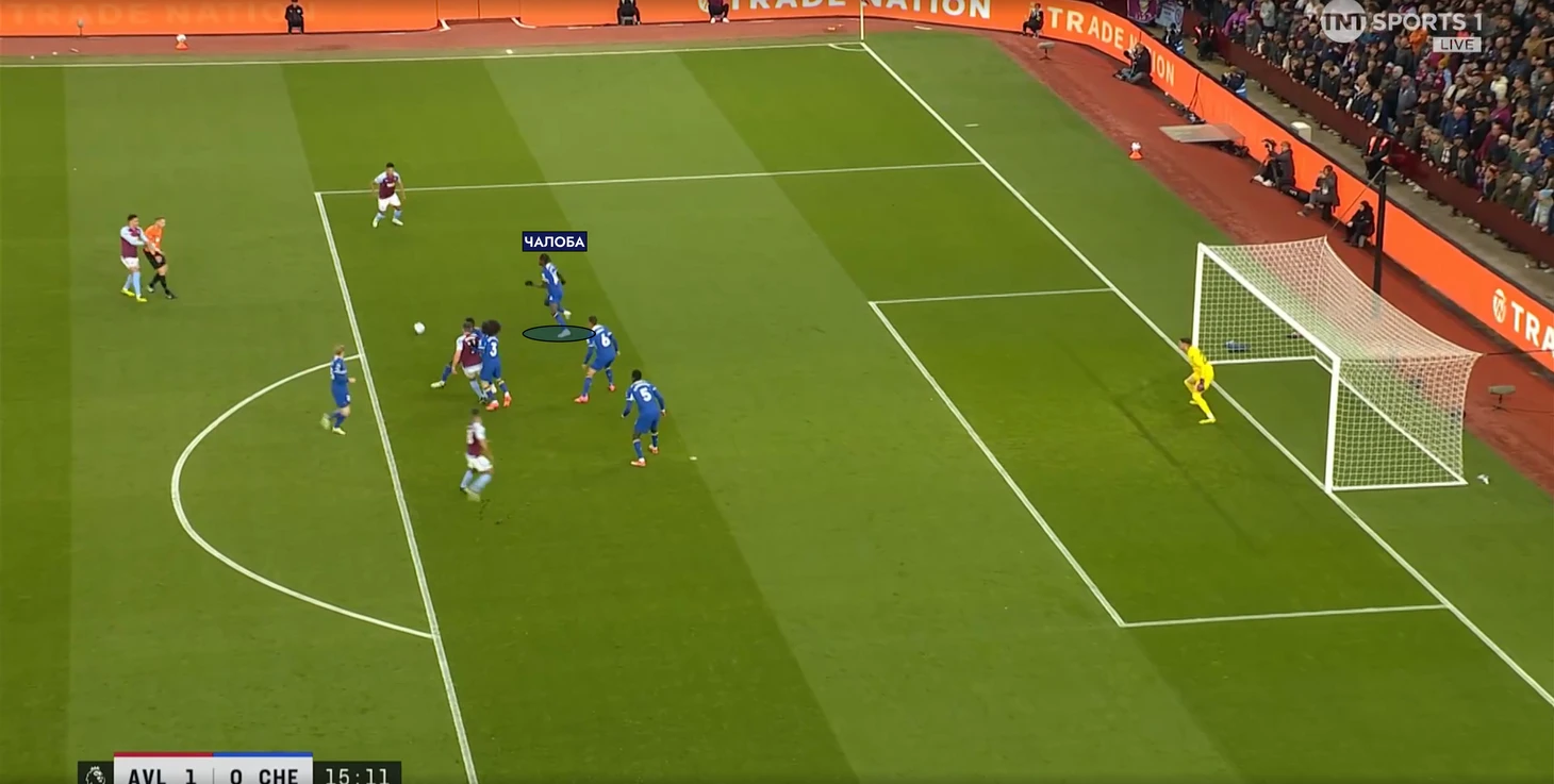 Жаль, что Нико находился в офсайде. Хороший прецедент на смену структуры игры – «Челси» вместо переката мяча на половине поля «Виллы» мог играть более рисково, и пытаться ловить соперника в переходных фазах.
