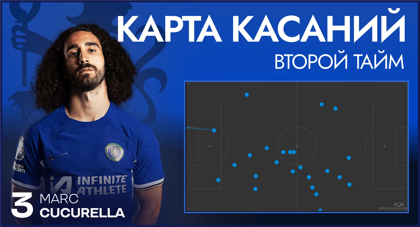 Как было сказано ранее, позиционное нападение от «Челси» оставляло желать лучшего. И Маурисио Почеттино постарался перестроить «синих» на более атакующий лад – Марк Кукурелья перешел с позиции левого фуллбека в опорку к Кайседо.