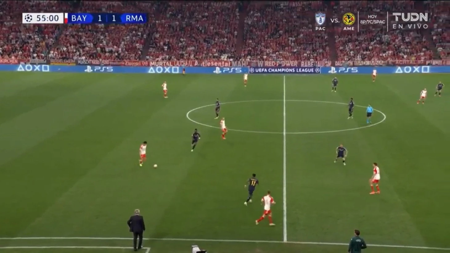С этого момента «Бавария» отказалась от высокого давления и пыталась поймать «Мадрид» на ошибках или создавать угрозу через игру 1-в-1 в исполнении Мусиалы. Прошло несколько неплохих атак, но глобально «Мадрид» уверенно контролировал ситуацию.
