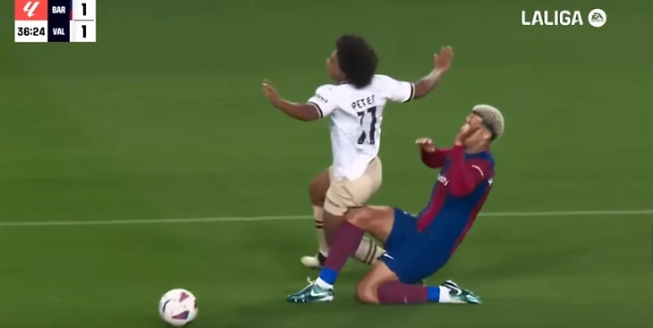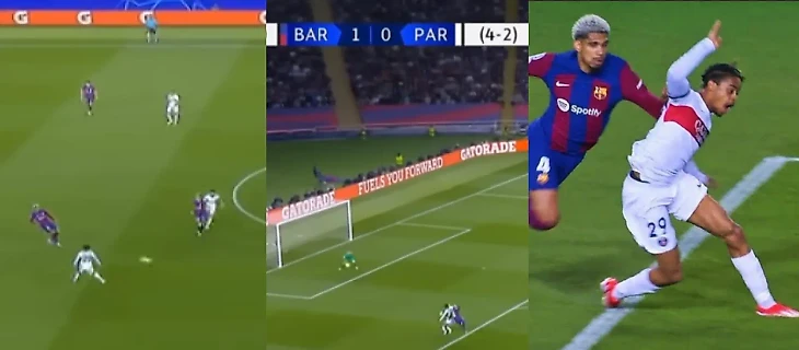 Бразилец оформил хет-трик уже в первом тайме, а «Барса» снова оказалась в положении, когда ей нужно отыгрывать два мяча. Араухо ещё успел и удалиться во втором тайме.