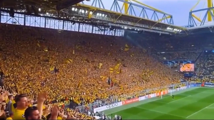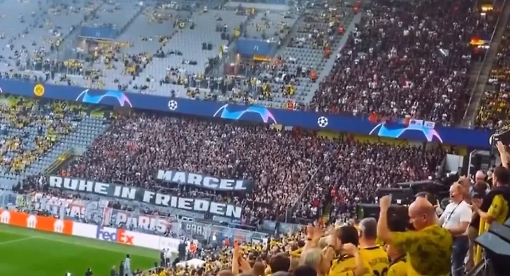 На «Вестфаленштадион», известный своей фантастической атмосферой, приехали 4 тысячи поклонников «ПСЖ». Им, конечно, не удалось перекричать шумных фанатов «шмелей», но они сделали красивый жест в адрес соперника.