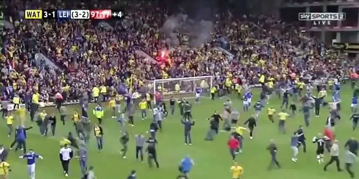 А ровно 11 лет назад случился матч, которым многие считают самым драматичным в истории плей-офф этого турнира. «Уотфорд» Джанфранко Дзолы проиграл первый матч «Лестеру» 0:1, и в ответном матче дома вел к 90-й минуте 2:1.Правило выездного гола не действовало, и дело шло к дополнительному времени.