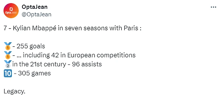 Тем временем Opta приводит впечатляющую статистику Килиана Мбаппе за «ПСЖ».