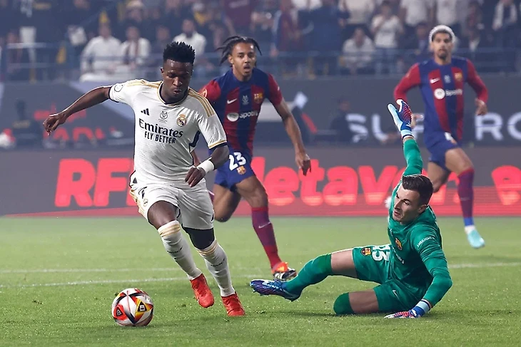 Напомню, что бразилец в ноябре получил травму бедра и предварительные сроки восстановления назывались в районе 2,5 месяцев. Однако уже спустя 1,5 месяца в домашней игре с «Мальоркой» немного забуксовавший «Реал» только после выхода Винисиуса на поле смог нарастить игровое преимущество, вообразить его в опасные моменты у ворот соперника и добыть минимальную победу. Далее следовали игры Суперкубка Испании, где Вини отбегал 105 минут в мадридском дерби и получил оценку 7.9, а через 4 дня похоронил «Барселону» , оформив хет-трик ещё в 1 тайме и попутно выиграв очередную очную дуэль у Рональда Араухо.