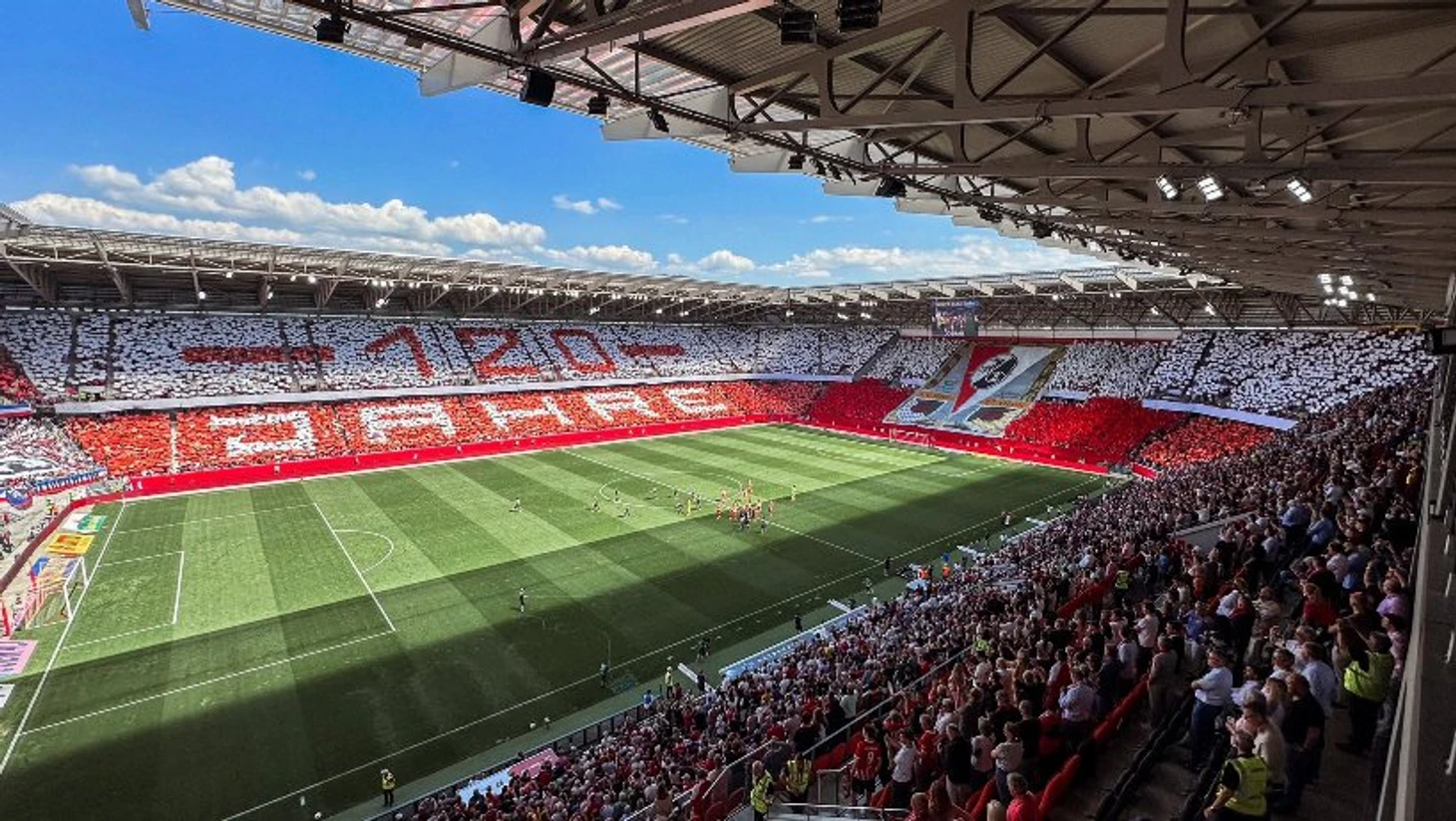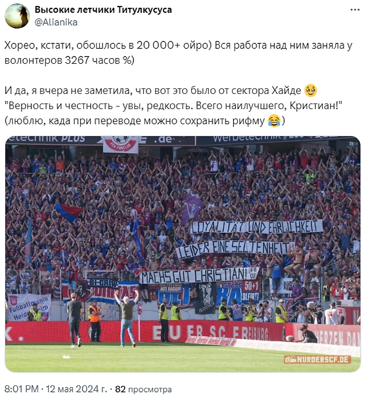 Хореография «Фрайбурга» в честь 120-летий клуба. Также после игры «брайсгау» прощались с Кристианом Штрафхом, проводившим на посту последний домашний матч.