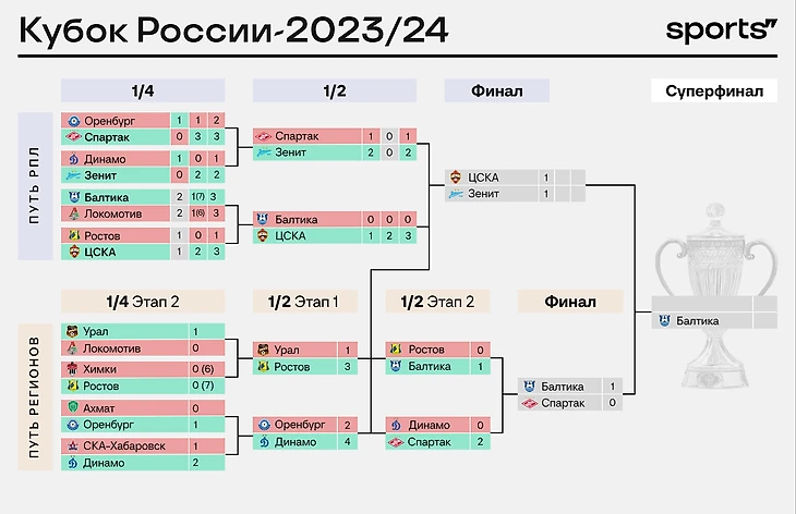 ● «Балтика» вышла в суперфинал Кубка России. И теперь ждет победителя ответного матча финала Пути РПЛ, там «Зенит» примет ЦСКА после 1:1 в московском матче.