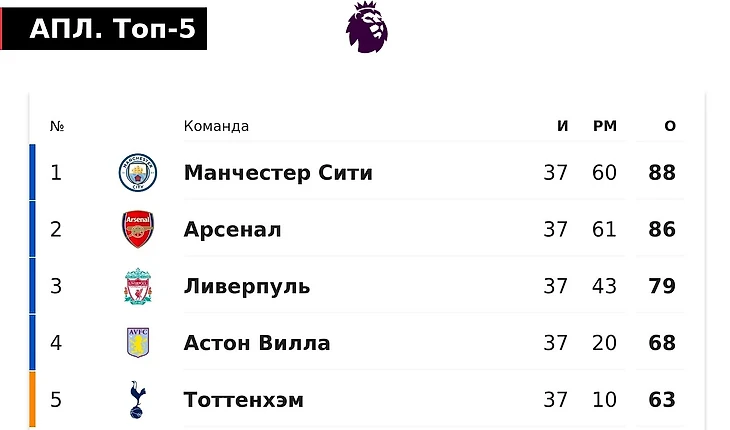 Так что «Вилла» в ЛЧ, «Сити» – лидер не только по потерянным, но и по набранным, а «Тоттенхэм» – максимум пятый, это пропуск в Лигу Европы.