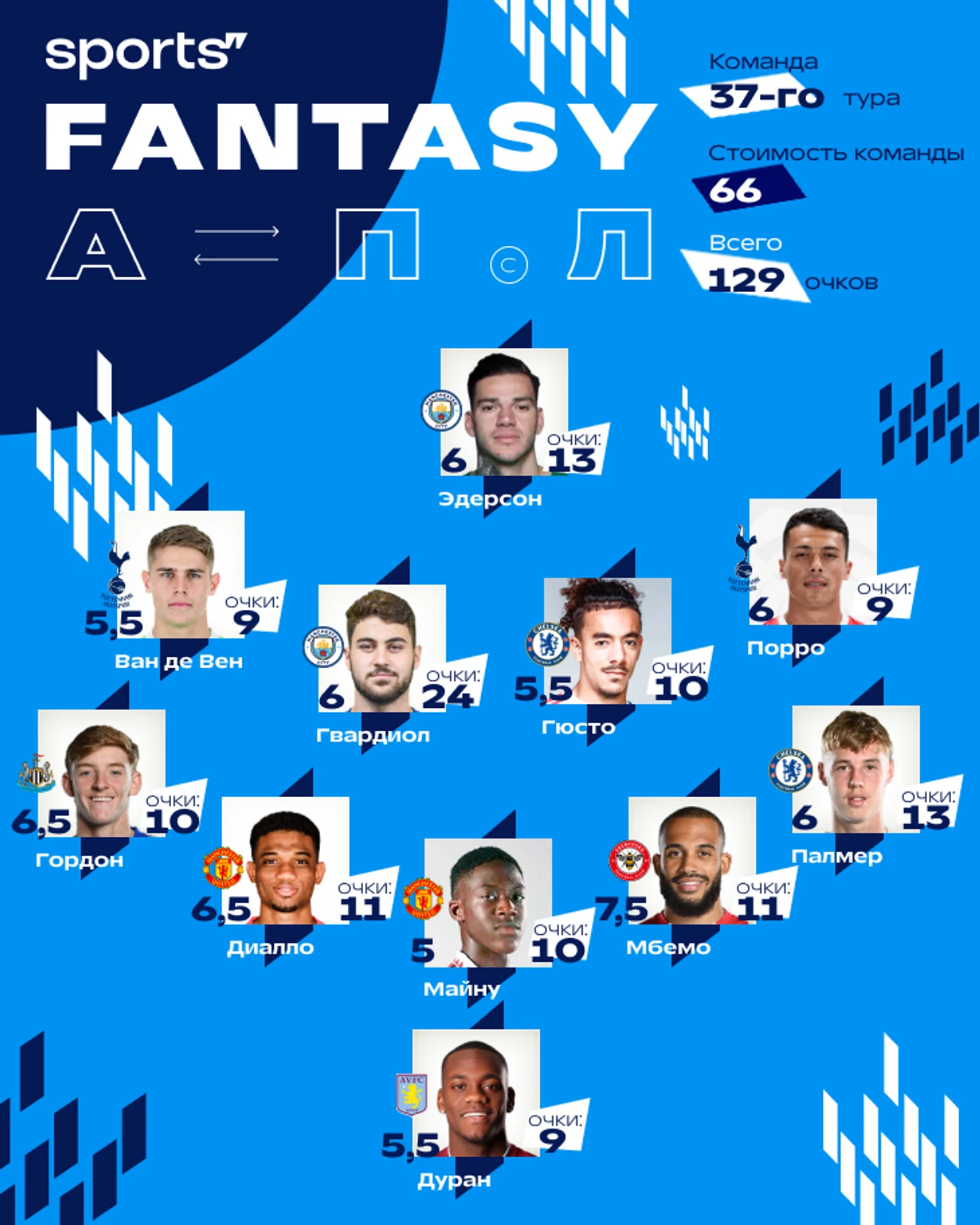 Это герои 37-го тура в фэнтези АПЛ. Сборная составлена так: