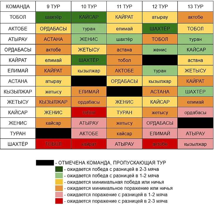 9 тур фэнтези Казахстанской Премьер-Лиги довольно сложный с точки зрения поиска фаворитов (везде играют примерно равные команды). «Туран» пропускает этот тур, будьте внимательны! Самый простой матч в этом туре у «Тобола»: