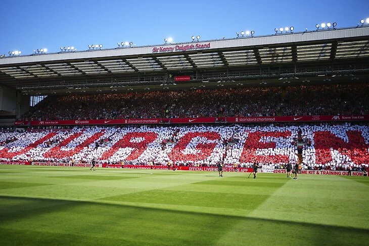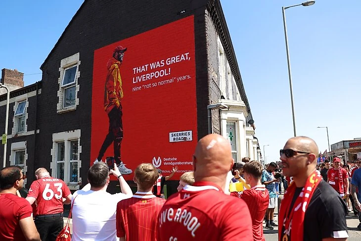 Внутри «Энфилда», который в эпоху Клоппа расширился на 15 тысяч мест, подготовили красоту. На одной трибуне за воротами выложили слово Danke – «Спасибо» на немецком. На центральной трибуне – Jurgen.