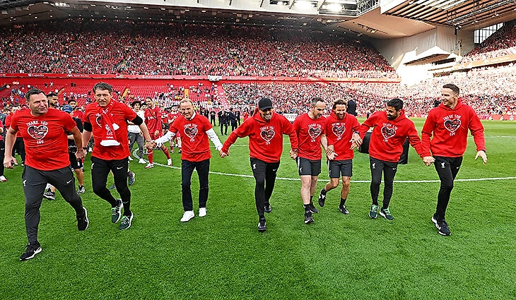 После речи Клопп с тренерским штабом попрощались с «Энфилдом»: вместе добежали до Копа с фирменными ударами кулаком, трибуны встретили ликованием – это фирменный жест Юргена после домашних побед.