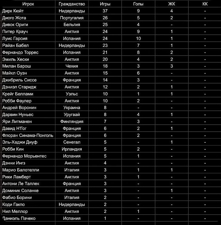 1.СТИВЕН ДЖЕРРАРД (АНГЛИЯ) - 73 МАТЧА, ЗАБИТЫЕ ГОЛЫ - 21, 9 ЖК