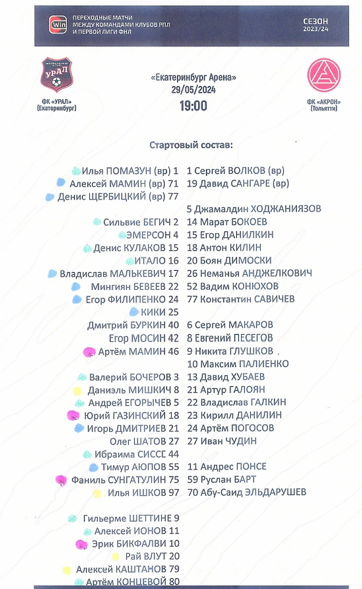 В предматчевой программке пять лидеров «Урала» Кулаков, Итало, Мишкич, Егорычев и Бикфалви выдали свои грустные признания о сезоне, признались во всемерной любви к болельщикам и пообещали сделать всё, чтобы исправить ситуацию.