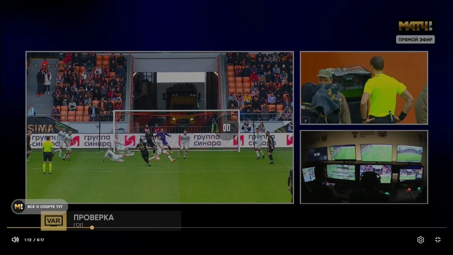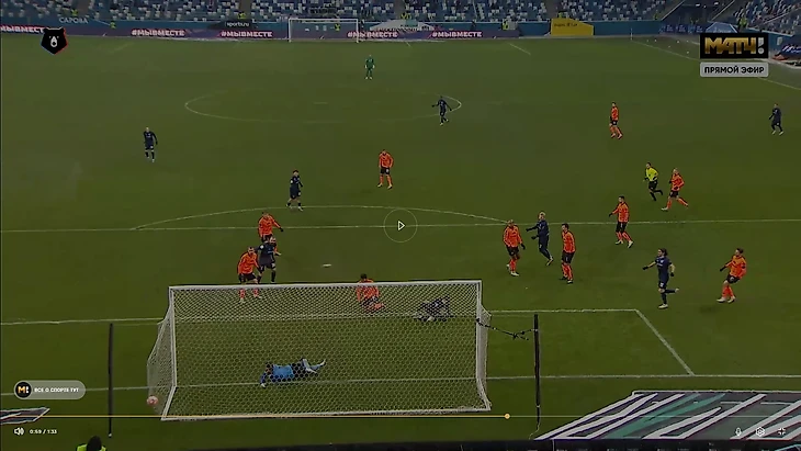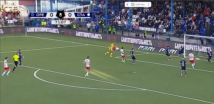 По скрину ясно, что Ионов не мешал вратарю, тот прекрасно видел момент удара. Но нет, счет остался 0:0 и продержался так до перерыва. Беспокоило то, что за весь тайм попали в створ ворот «Акрона» лишь раз, удар головой Бегича поймал Волков.