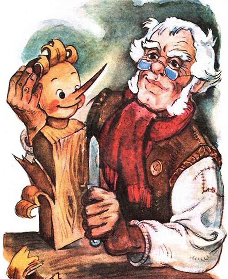 Однажды Джузеппе в очередной раз напился, после чего ему в руки попалось говорящее полено. Джузеппе испугался – не будем его за это осуждать – и отдал странное бревно Карло. А тот уже вырезал из полена живую куклу.