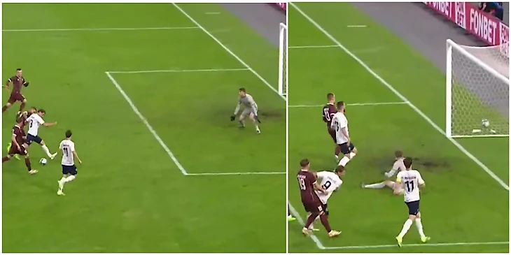 Дальше суперсэйвом порадовал Матвей Сафонов – потащил из угла.