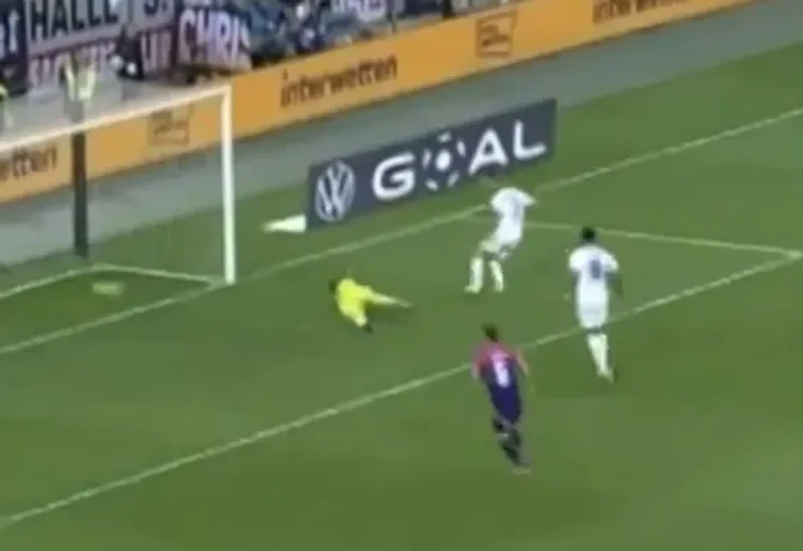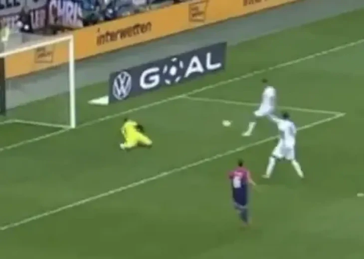 Удар был не очень сильным, и немец должен был легко фиксировать мяч, но подарил сопернику легкое добивание.