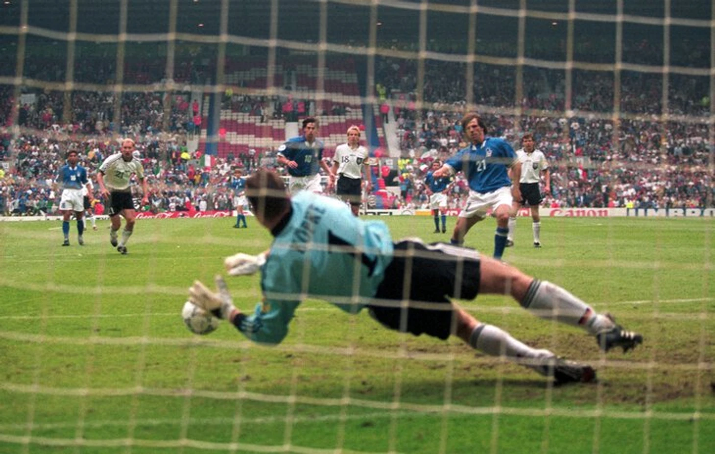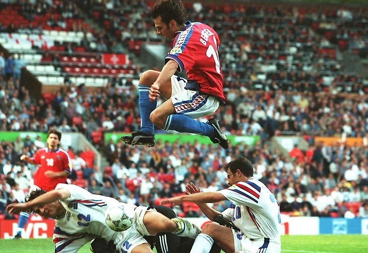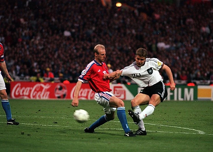 Франция и Англия вполне могли бы встретиться в финале, но на «Уэмбли» вышли их соперники. Чехи 14 минут находились в сказке после реализованного Патриком Бергером пенальти во втором тайме.