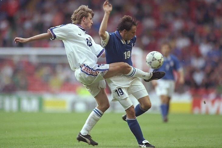Из футбольного. Не будь это моим первым таким турниром, я бы его назвал скорее скучным. Бесконечные серии пенальти. Запомнилась страсть англичан. Я там узнал про Гаскойна! Остальные были в АПЛ. Очень была близка Хорватия. Из-за формы, знаю многие так же полюбили эту команду. Асанович, Шукер, Бобан и другие. С немцами их засудили. Было обидно и они молодцы, что отомстили через 2 года. У Чехов пишут про Недведа, но по мне самым ярким был Поборски. Еще эти длинные волосы. Немцы тогда были реально машиной. Справедливо Заммера признали лучшим, но я запомнил Айлтса. Он играл в центре и был самым незаметным игроком. Комментаторы восхищались его черновой работой. Я говорил тоже самое друзьям и думал, что разбираюсь в футболе. Мне казалось ему лет 60. Помню была жара и в Москве люли купались в фонтанах. Это показывали на евроньюс. А еще танцующих Ельцина и Зюганова. Вторую часть турнира я смотрел заграницей.