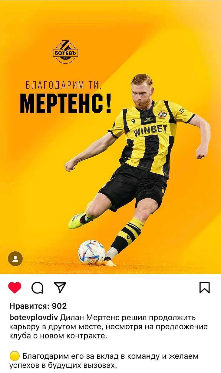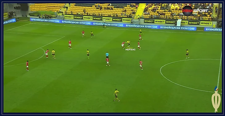 Последние матчи «Ботев» играл по схеме 4-2-3-1, но схема 3-4-3/3-4-2-1 также знакома Мертенсу по сезону 22/23. В этой схеме он чаще располагался в центре поля, диктуя темп и направление атак.