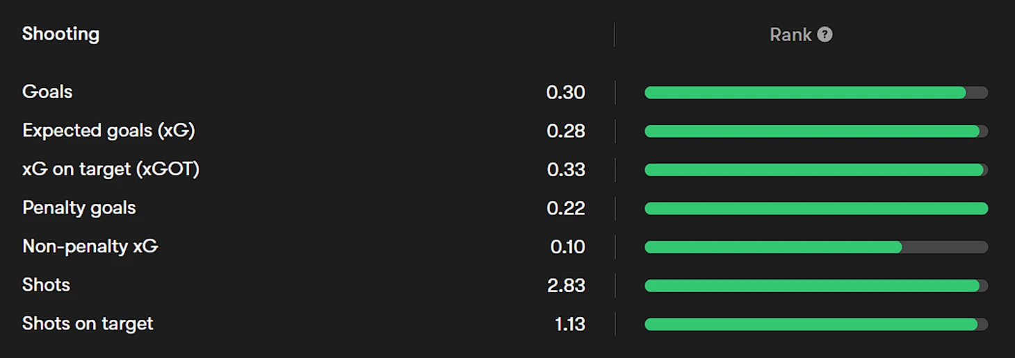 При Карле Робинсоне он был во многом освобожден от оборонительной работы и прессинга, располагался высоко, получал мяч почти на одной линии с нападающими, то есть был классическим атакующим полузащитником, чем и обусловлена его высокая результативность в сезоне 21/22. Лайам Мэннинг опустил Брэннагана ниже и наделил его полномочиями боллхэндлера, теперь он должен был активно участвовать в перетаскивании мяча из середины поля на треть соперника. Футбол Деза Бакингема подразумевает, что в работе по возврату владения обязаны принимать участие абсолютно все. Не от хорошей жизни Кэма опустили еще глубже – в опорную зону, так как других качественных и профильных полузащитников-разрушителей в команде не нашлось. При этом, накопленные харизма и авторитет оставили за Брэннаганом право на удар почти с любой позиции. Из опорной зоны он обычно успевал только на второй темп атаки, отсюда и дикий перекос в сторону дальних ударов: 88 против только 27 внутри штрафной. Этим и обусловлен столь низкий xG с игры.