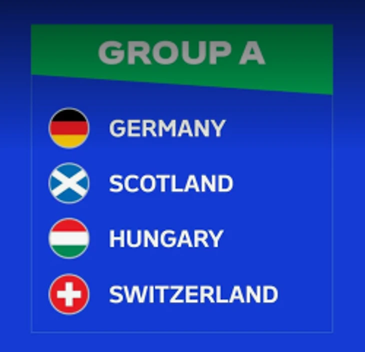 Итак, сегодня начинается чемпионат европы по футболу. Матч открытие - Германия - Шотландия. Они представляют группу А.
