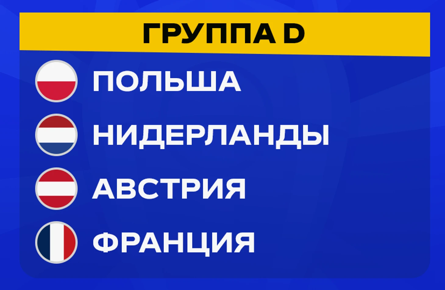 Франция. Ну тут фаворит на евро. Прошлое евро - вылет в 1/8, ЧМ 2022 - 2-ое место. Прогноз - выход из группы с 1-ого места.