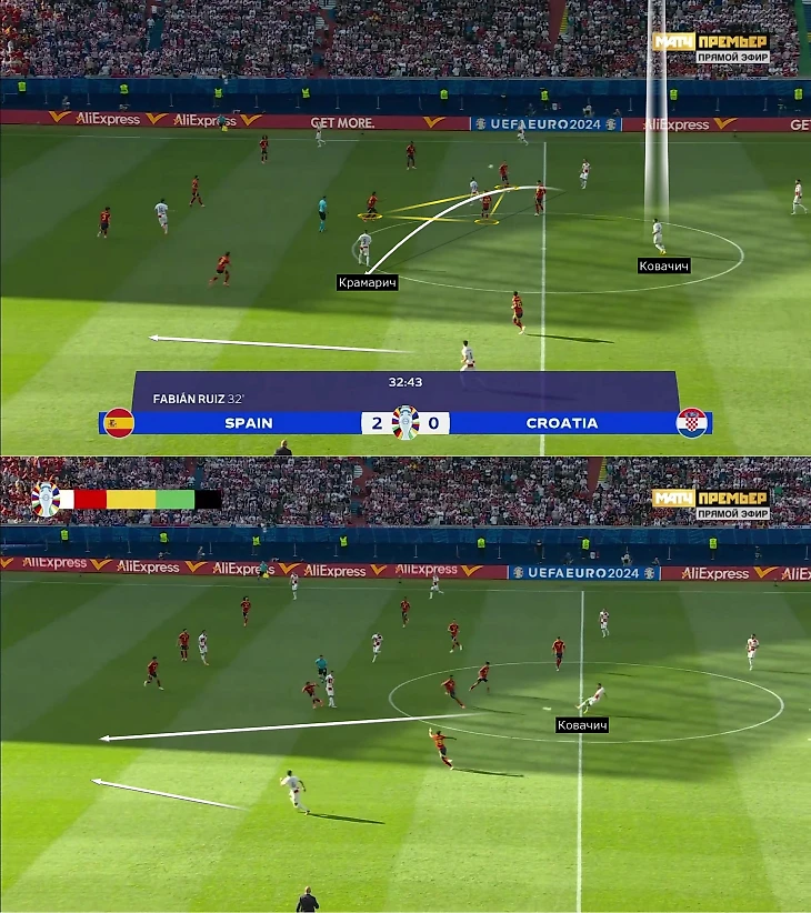 Хорватия так активно следила за Родри, что Руис получил очень много свободы. И идеально воспользовался этим в первом тайме.