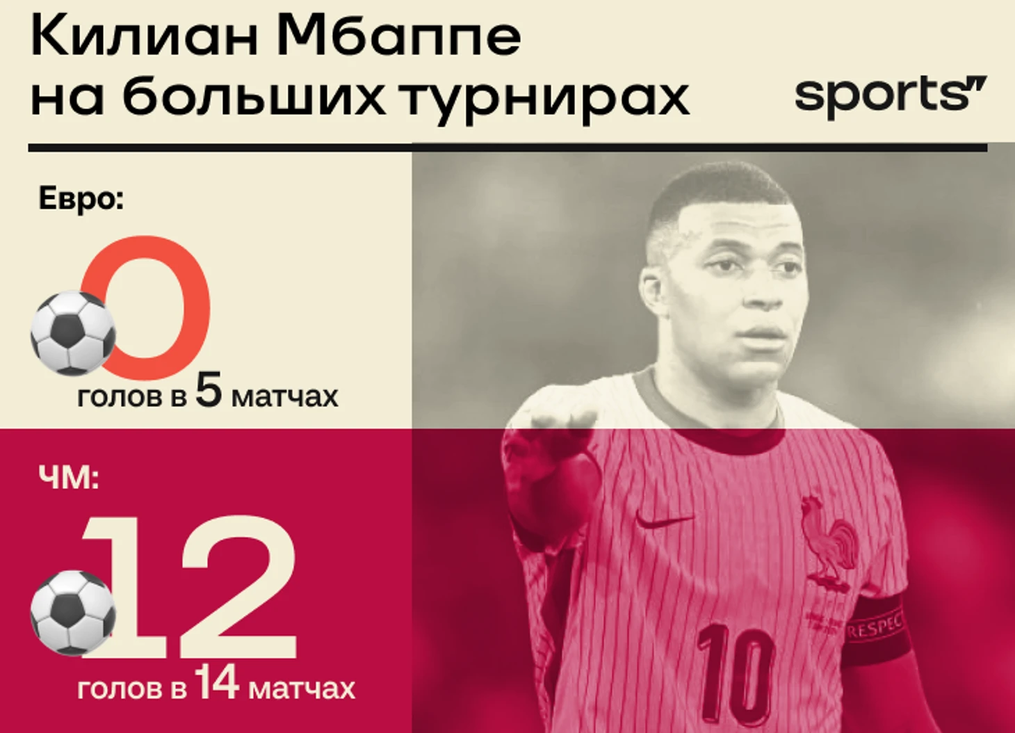 0 голов Мбаппе на Евро. Пугающий контраст с ЧМ