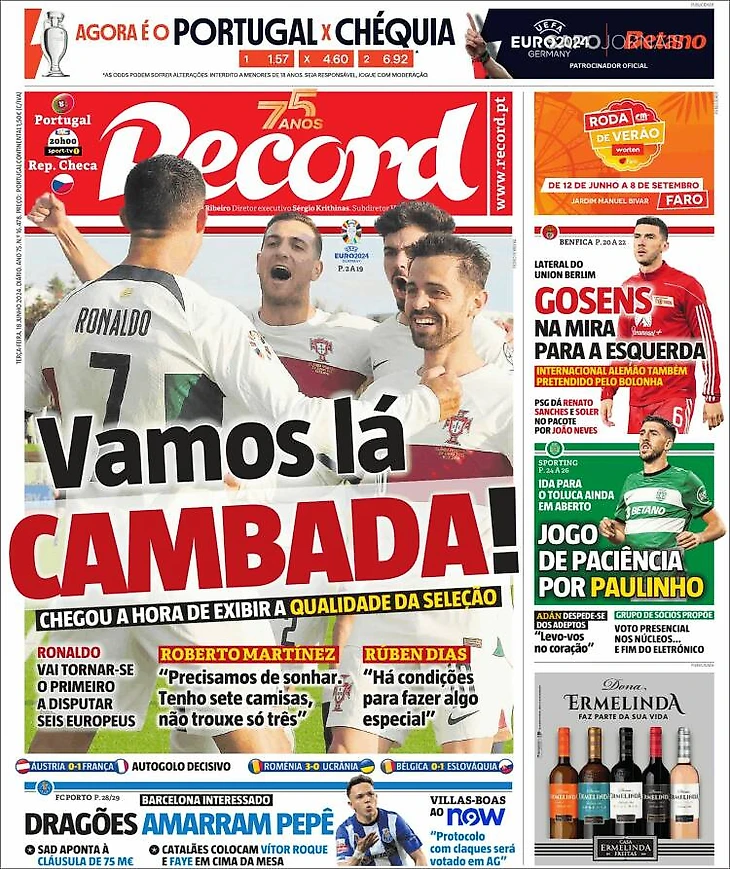 «Вперед, банда!» – это песня, выпущенная в 1986 году во время чемпионата мира в Мексике, она до сих пор является одной из самых популярных песен в поддержку сборной Португалии. К ЧМ-2022 её выпустили в новой аранжировке Теперь он появляется с новыми аранжировками и лозунгом «Поехали, Камбада», чтобы поддержать команду в Катаре. Послушайте!
