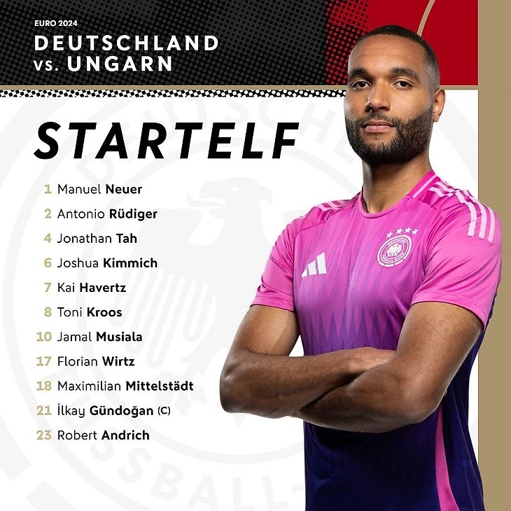 Состав сборной Германии на игру со сборной Венгрии был таким же, что и против Шотландии. Однако уровень сопротивления со стороны соперника существенно отличался. Достаточно сказать, что первый сейв Мануэля Нойера случился уже на 14-й секунде. Спустя ещё 5 минут после углового по воротам немцев опасно бил выступающий в швейцарской лиге Болла.