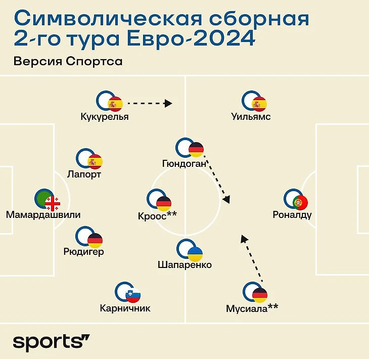 Много немцев, испанцев и… Роналду! Символическая сборная 2-го тура Евро