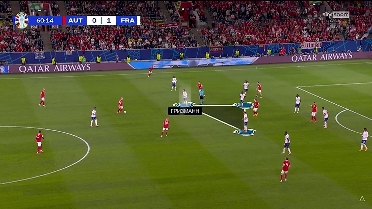 Да, были моменты, когда схема была ближе к 4-2-3-1 – такая запись формации Франции тоже будет корректной. Но нужно понимать, что грань очень тонкая, а Гризманн уверенно помогал при любом сочетании центра.