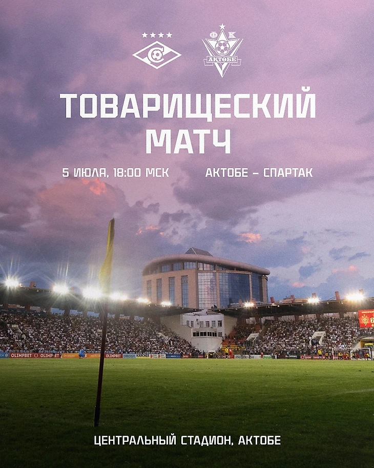 5 июля нас ждет гостевая игра против «Актобе» из одноименного города. Соперник примет «Спартак» на своем стадионе в 20:00 по местному времени (в 18:00 по московскому).