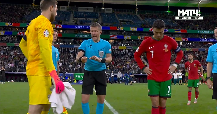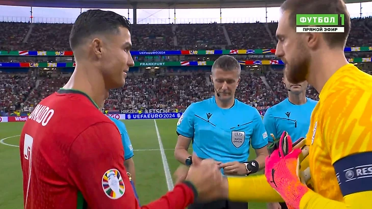 В отличие от прошлых матчей, Роналду был сильно сосредоточен перед свистком. Очень короткая улыбка Яну Облаку – и все.