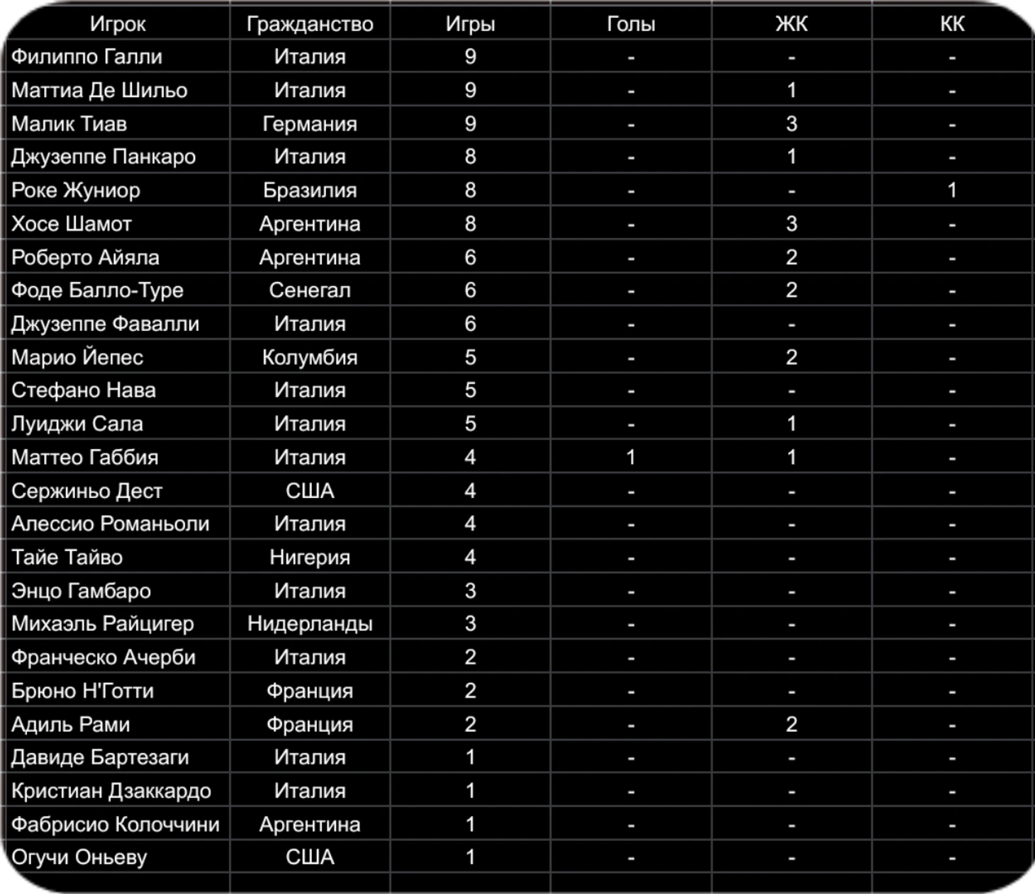 3.АЛЬБЕРТО ДЖИЛАРДИНО (ИТАЛИЯ) - 26 МАТЧЕЙ, ЗАБИТЫЕ ГОЛЫ - 4, 3 ЖК