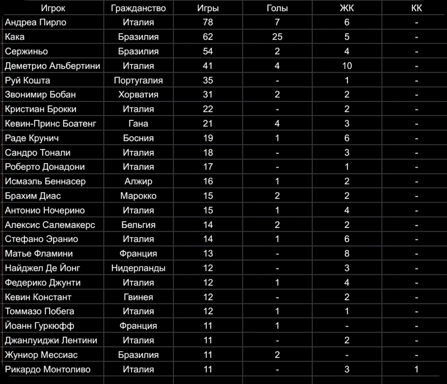 3.АЛЕССАНДРО КОСТАКУРТА (ИТАЛИЯ) - 65 МАТЧЕЙ, 12 ЖК, 1 КК