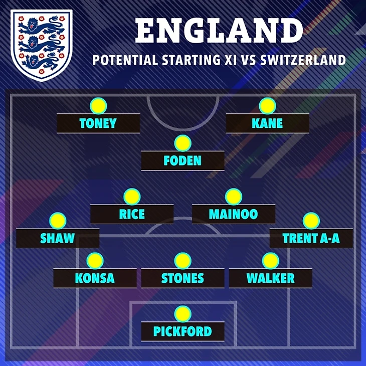 Айван Тоуни может сыграть в атаке Кейном , а Фил Фоден будет действовать позади нападающих вместо Беллингема.