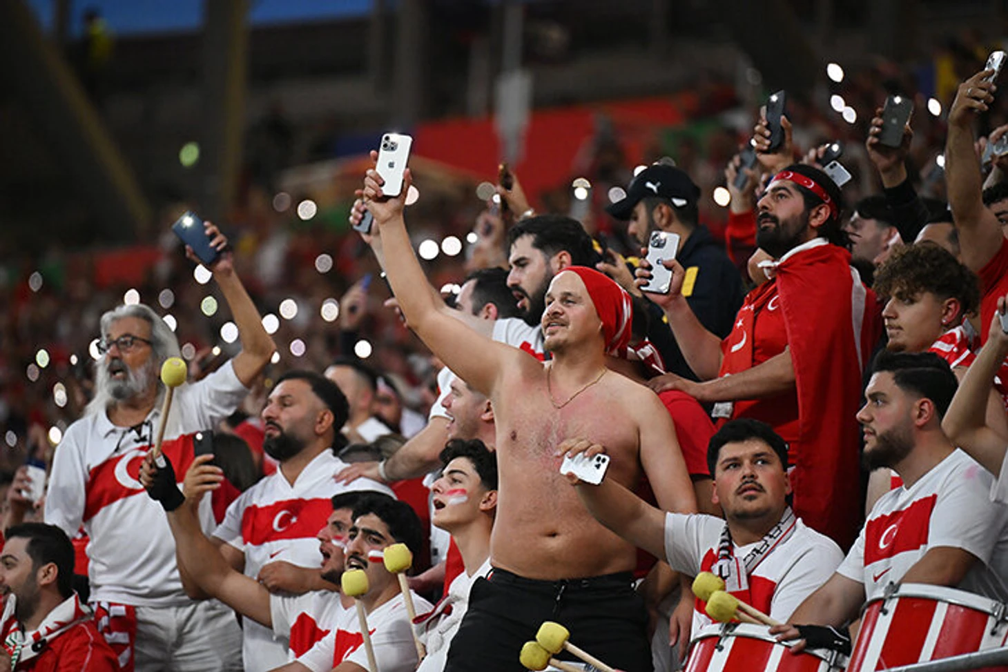 Турецкие болельщики постоянно давят: ворота Австрии в первом тайме – как раз у турецкой трибуны. Свист, крики, бурные жесты, летящие пивные стаканы – в ход идет все. И это точно влияет: уже на первой минуте Турция забивает. Только взгляните на эти эмоции.