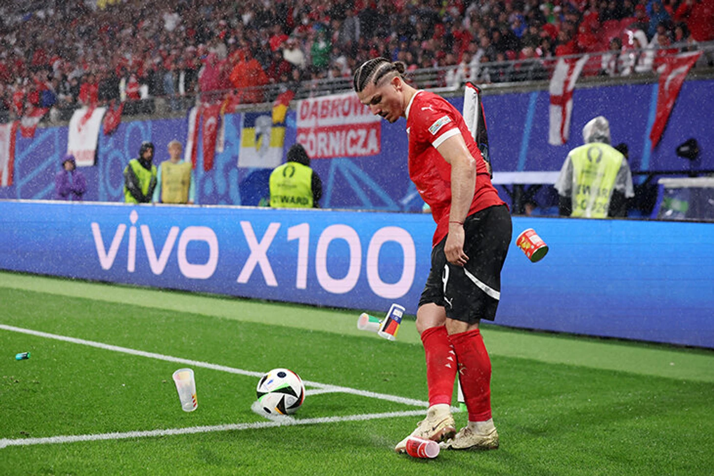 На 72-й Австрия прижала Турцию к штрафной. Потом – угловой, и в подающего Марселя Забитцера летит груда пивных стаканов.