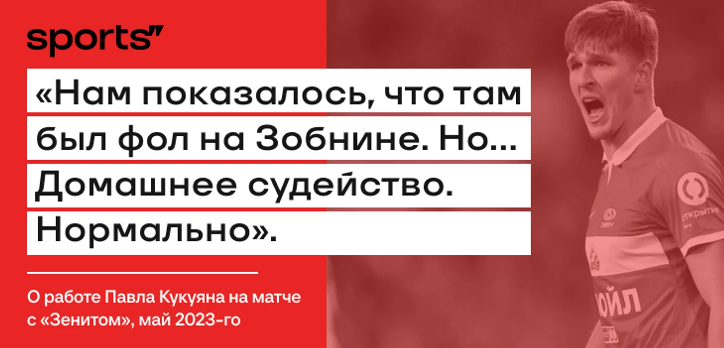 Александр еще в перерыве набросился на судейство Павла Кукуяна из-за возможного фола на игроке «Спартака» перед вторым голом «Зенита»: «Нам показалось, что там был фол на Зобнине. Но… Домашнее судейство. Нормально».