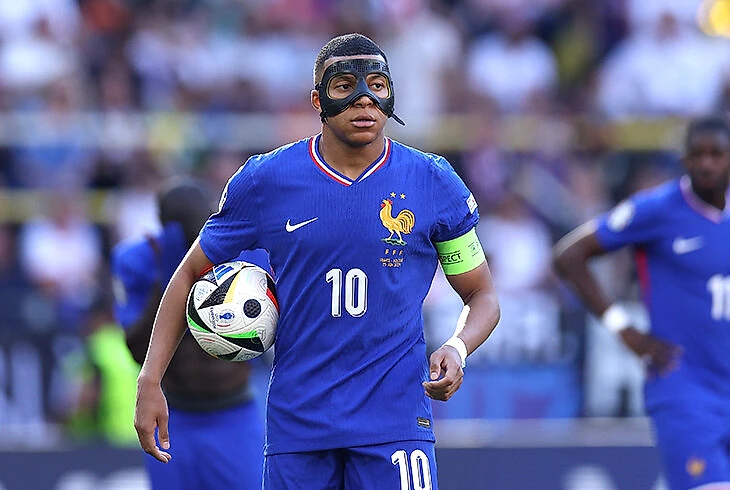 Пока сложный Евро для Килиана Мбаппе: один гол (и тот с пенальти), один сломанный нос, больше единицы – только число масок.