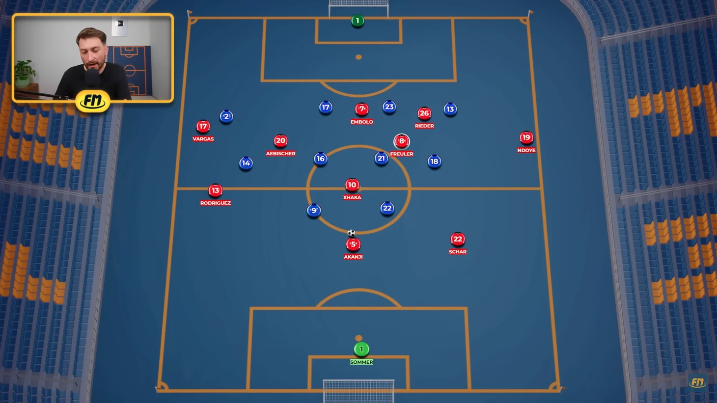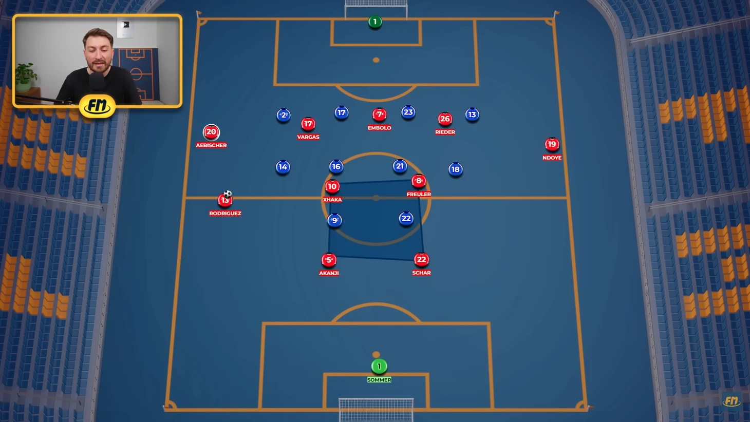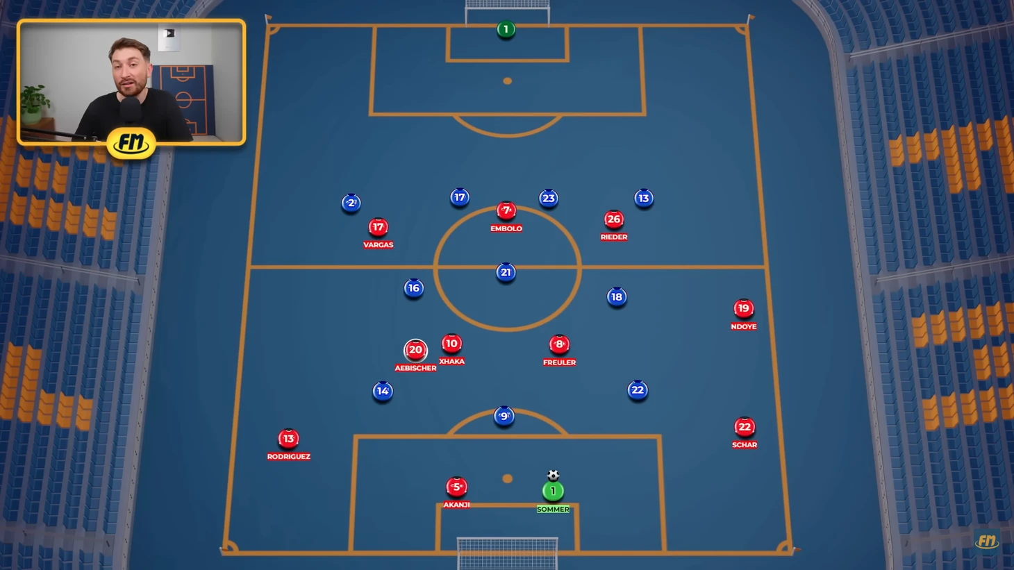 Если на правом фланге полузащиты Ндойе играет преимущественно по бровке, то слева можно увидеть, как Эбишер постоянно меняет свою позицию. В силу модельных характеристик как игрока, он не может играть в роли классического вингбэка по флангу. В клубе он выступает как опорный полузащитник - а эти роли в сборной заняли Джака и Фройлер.