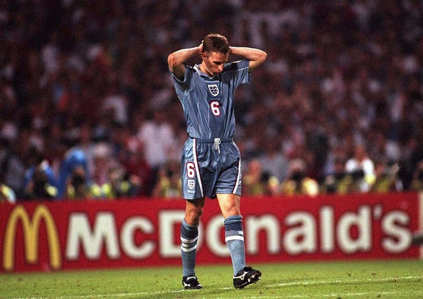 Все начинается раньше. Фанаты «Кристал Пэлас» дразнят неврастеничного щуплого юниора за длинный нос кричалками: по-доброму, но громко. Саутгейт обижается и переживает. Задумывается об уходе. А тут еще партнеры смеются. Уже не из-за носа, а потому, что он спускается на обеды в костюме.