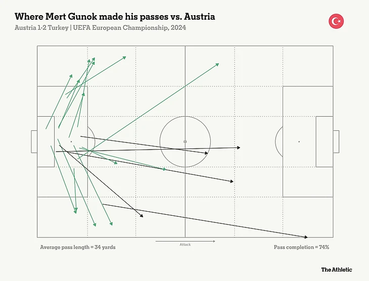 Мерт также сыграл важную роль в тактической победе Монтеллы над прессингом Рангника: голкипер всегда славился длинными передачами, что в игре против Австрии стало главным оружием турков при билд-апе, поскольку его точные передачи достигали целей в лице глубоко опускавшегося Арды Гюлера или открывавшегося на правом фланге обороны высокого Мерта Мюльдюра, забиравшего передачи верхом.