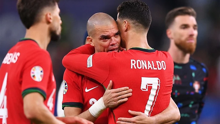 Команда Дидье Дешама является Англией на минималках. Кто из них играет лучше, мы можем увидеть только в финале, хотя не хочется видеть такое «зрелище». У французов по-прежнему один гол с игры! И можно говорить всё что хотим, но они в полуфинале. Ждем, когда наконец-то свой высокий уровень покажет Килиана Мбаппе. «Черепашке» очень тяжело играть в маске, но при этом очевидно, что главная звезда французов находится не в лучшей форме. Португалии нужно научиться жить без Криштиану Роналду. Игроки хотели бы этого, но сборная по-прежнему в заложниках одного человека, который провёл плохой турнир. Он впервые не забил на крупном турнире. Этим всё сказано. Годы берут своё. Но Роналду закончит в сборной только, когда захочет. И это проблема. Великий игрок провёл последний матч на Евро. Роберто Мартинес, видимо, боялся оставить Роналду в запасе, иначе его бы так же уволили как Фернанду Сантуша. Но именно тренер сделал так, чтобы Бернарду Силва, Бруну Фернандеш и другие классные парни выглядели бы тенью самих себя. В итоге команда с составом почти без слабых мест уезжает домой. Жаль лишь 41-летнего Пепе. Он бился до конца, особенно когда догнал Маркюса Тюрама на 90-й минуте! Слезы Пепе – главный кадр четвертьфиналов Евро.