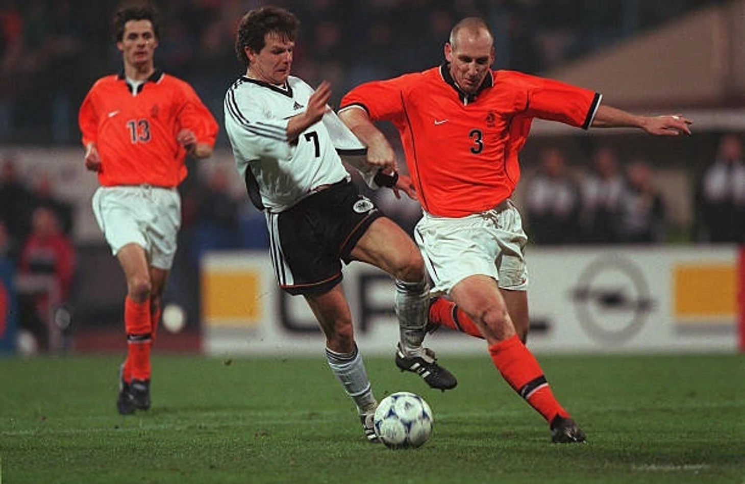 На «Олд Траффорд» защитник сборной Нидерландов появился летом 1998-го. После ухода Гари Паллистера, много лет закрывающего позицию центрбека, Алекс Фергюсон (тогда еще без титула «сэр») остановил свой взор на одном из лучших игроков голландского чемпионата. Яп Стам на тот момент выступал за ПСВ, выиграв и чемпионат, и Кубок, и два Суперкубка Нидерландов. А в конце 1997-го 25-летний футболист и вовсе получил награду «Футболист года в Нидерландах». Топ-клубы выстроились в очередь за габаритным защитником. Во Францию на чемпионат мира 1998 года Яп Стам поехал как основной защитник сборной Нидерландов, проведя все семь матчей в стартовой обойме. Однако дебют в составе национальной команды на международных соревнованиях состоялся еще в Англии - на Евро двумя годами ранее. Правда защитнику ПСВ не удалось там сыграть ни минуты.