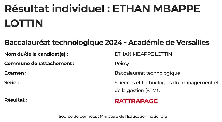 Но если средний балл находится между 8 и 10, то включается опция RATTRAPAGE, когда можно сразу пересдать устно два предмета, где результаты оказались ниже десяти баллов. Именно такую надпись мы и видели на скрине у Мбаппе. Похоже, для сдачи экзаменов ему не хватило совсем немного.