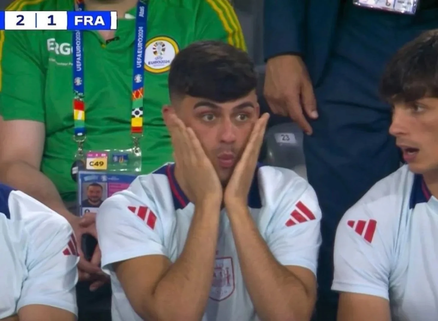 Не только болельщики были впечатлены ударом Ламина, но и товарищи по команде. В сети завирусилась реакция Педри, оставшегося на скамейке запасных из-за травмы, полученной после столкновения с Тони Кроосом в четвертьфинале – очень красноречивая.